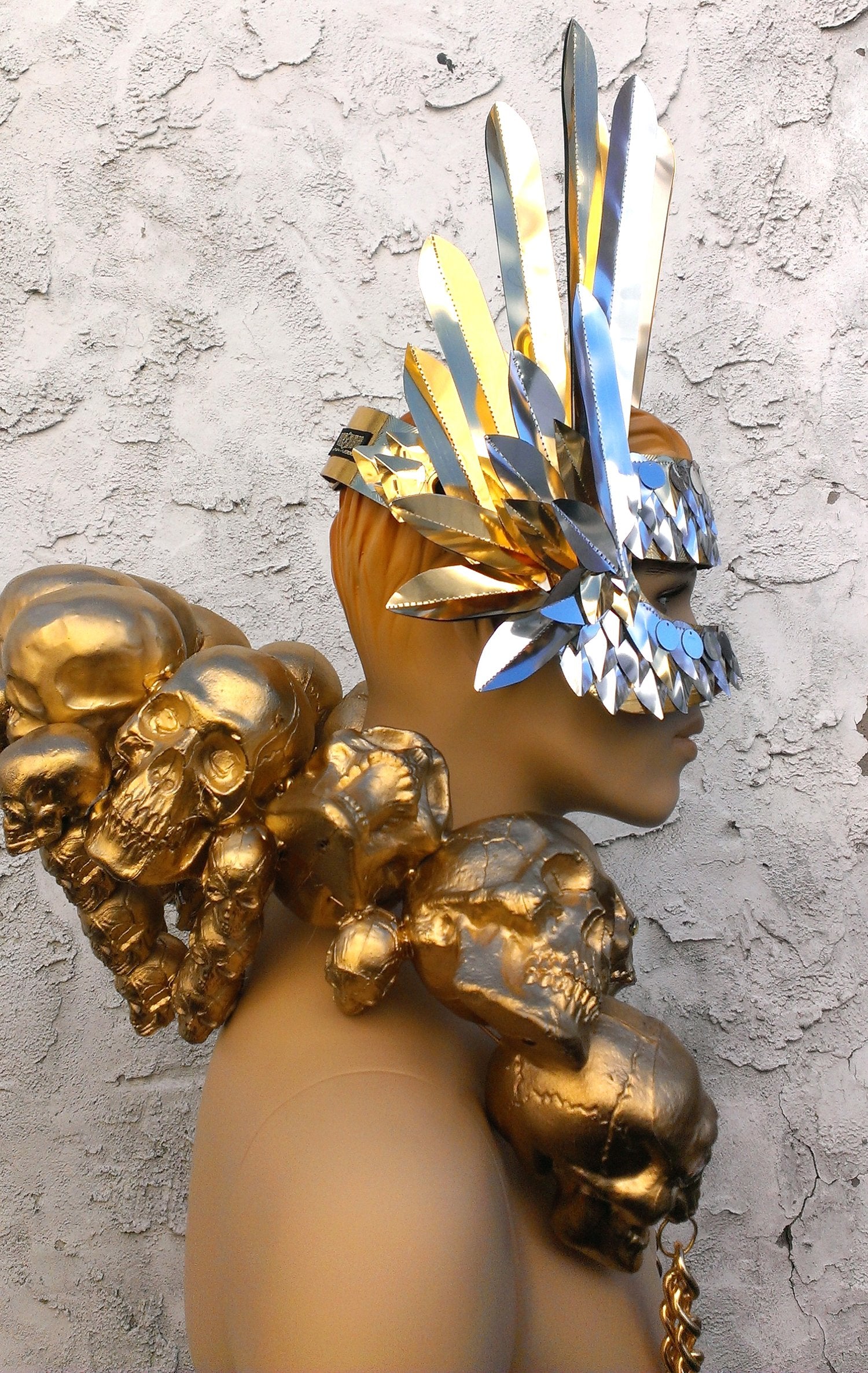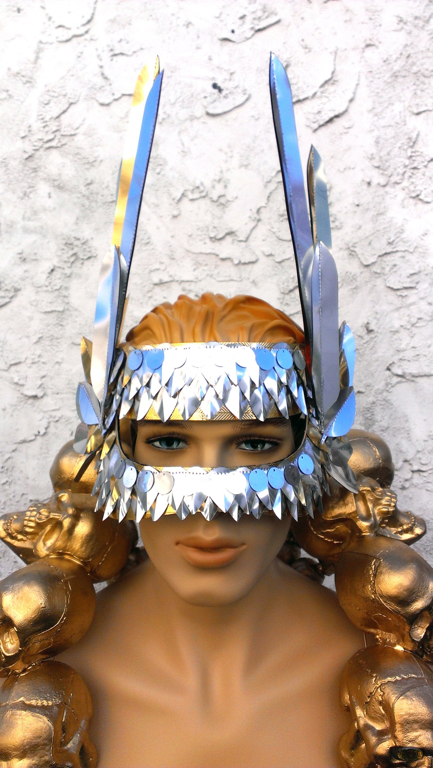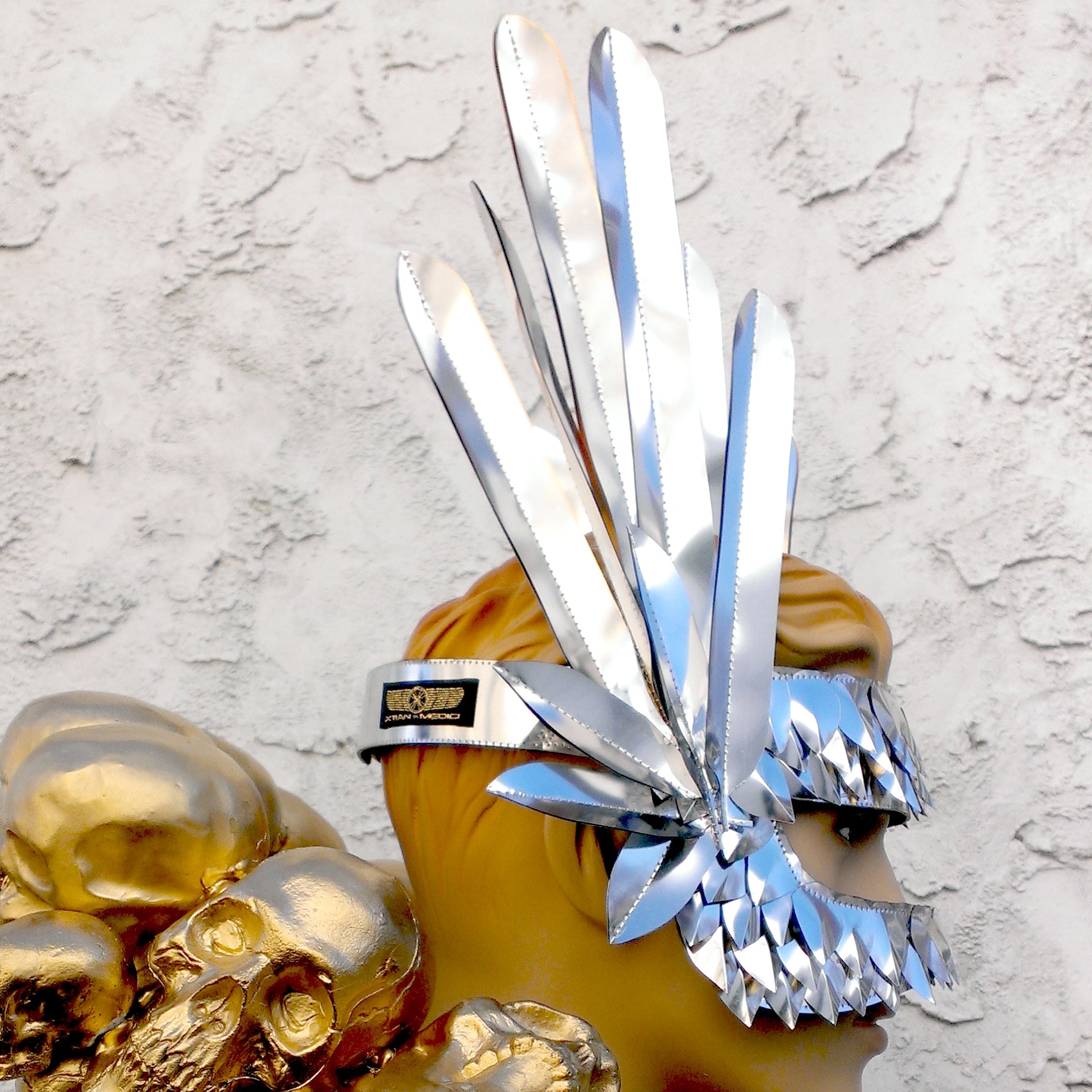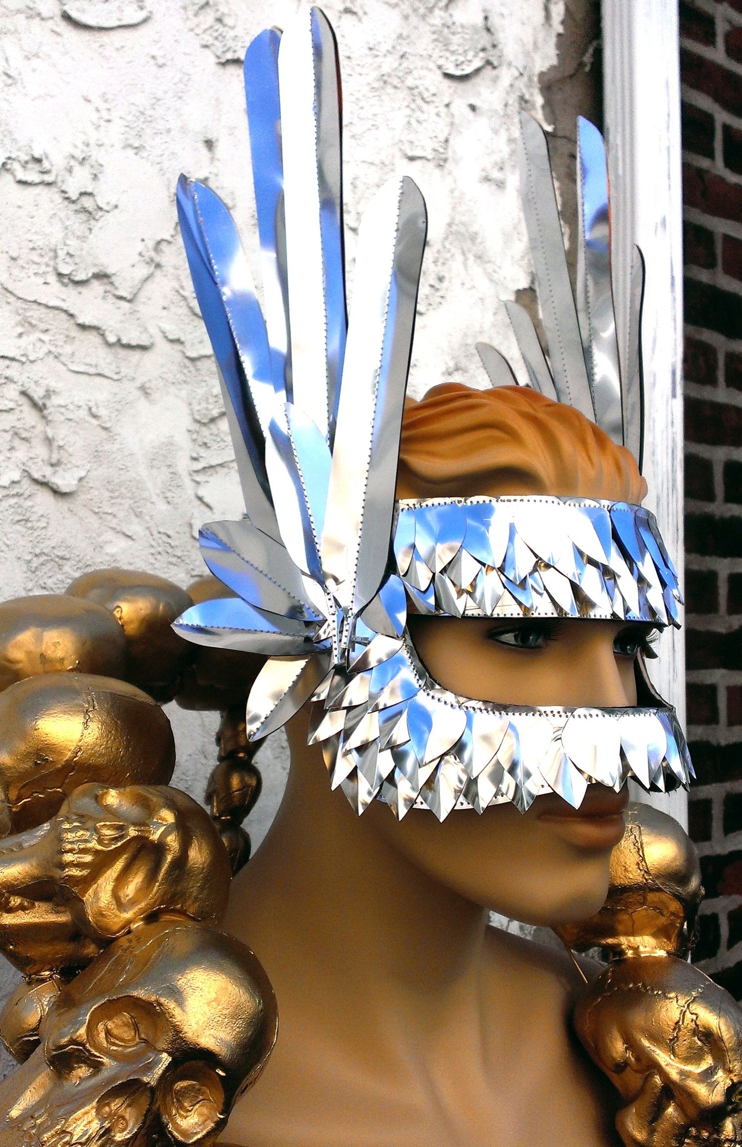 Nephilim® Dragon Scale & Feather Headdress/Visor (Silver)