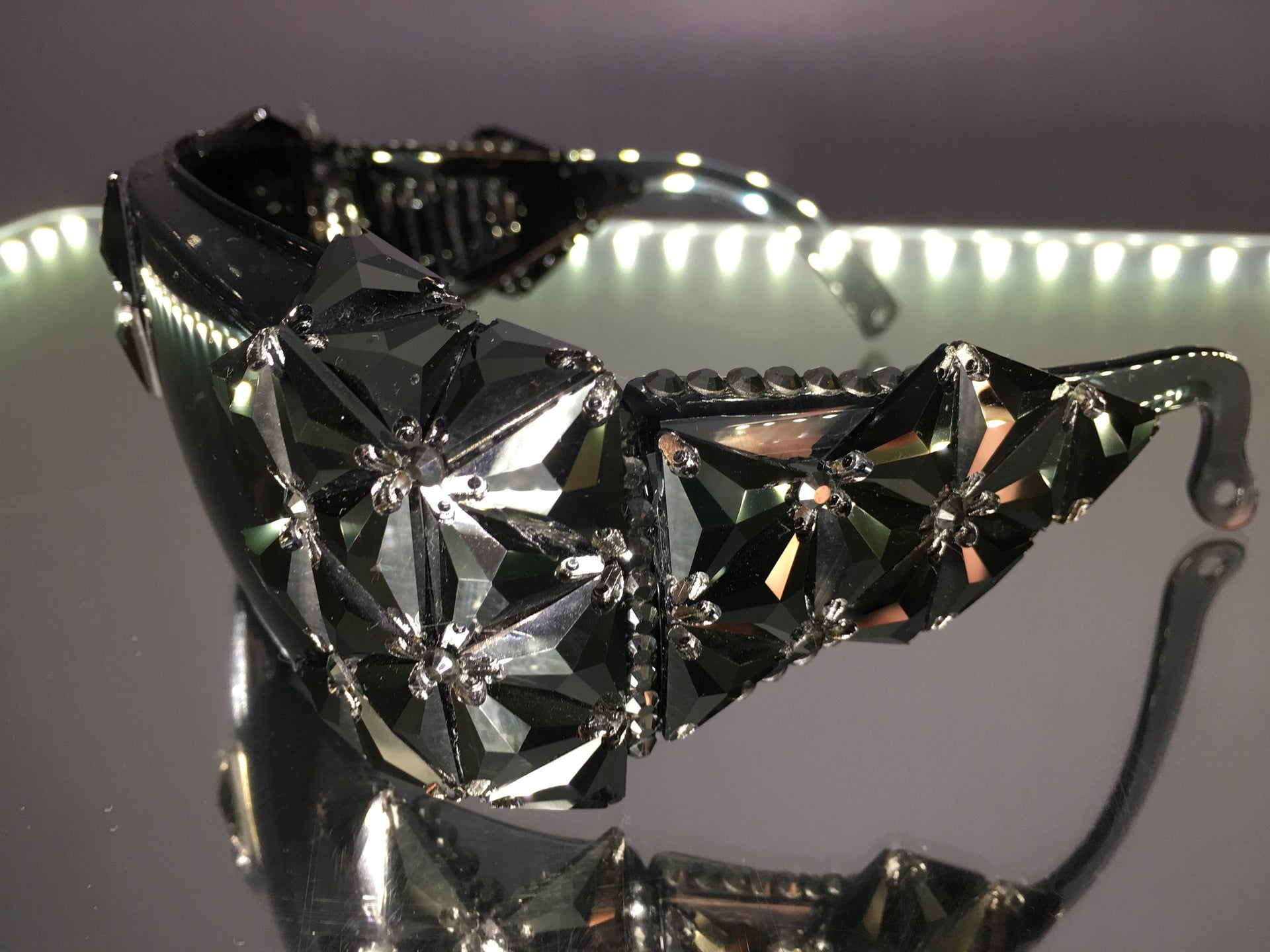 The be-all and end-all to all sunglasses! There is ONLY ONE pair for the lucky owner of this unique pair of sunglasses! Designed with over $200.00+ in Swarovski crystal marcasite "Elements" strategically placed to create an interlocking design that looks out of this world!