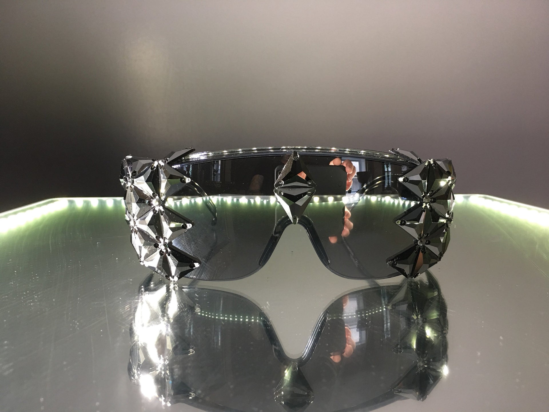 TOTAL MUST HAVE! Gorgeous and unique ALL SWAROVSKI crystal sunglasses with silver chrome UV coated lenses.