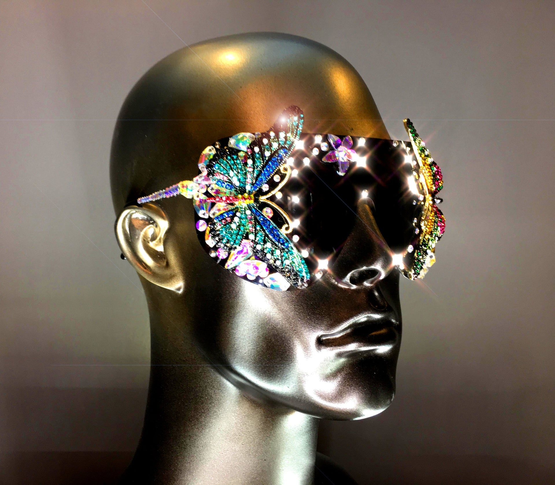 Unique One-of-a-Kind Handcrafted Crystal Eyewear and Sunglasses for Burning Man Festivals, Red Carpet Events, Coachella, EDM Music Concerts, or Cosplay. The Galactic's are Limited Edition and are made with 100% Swarovski Crystal Elements.