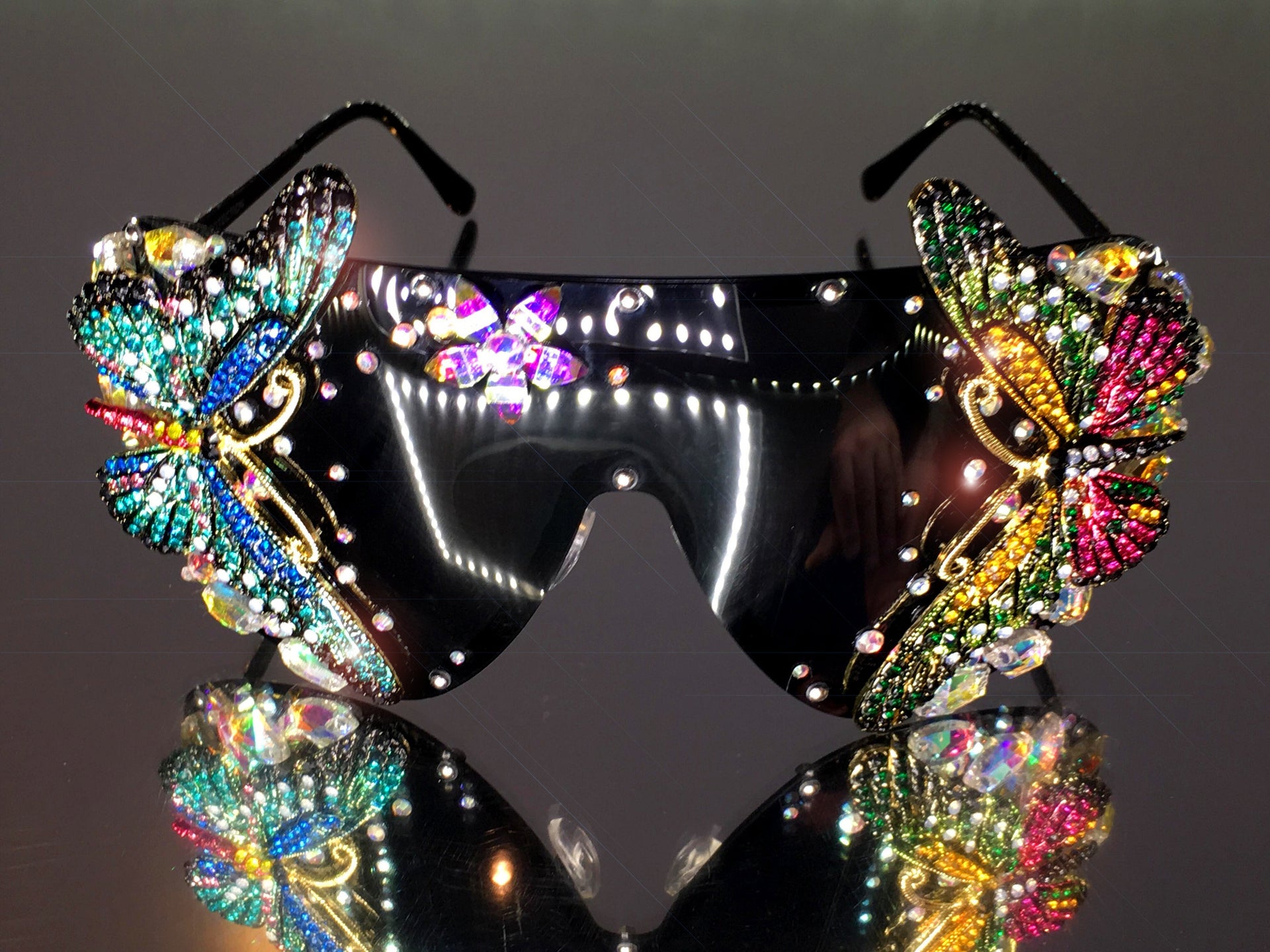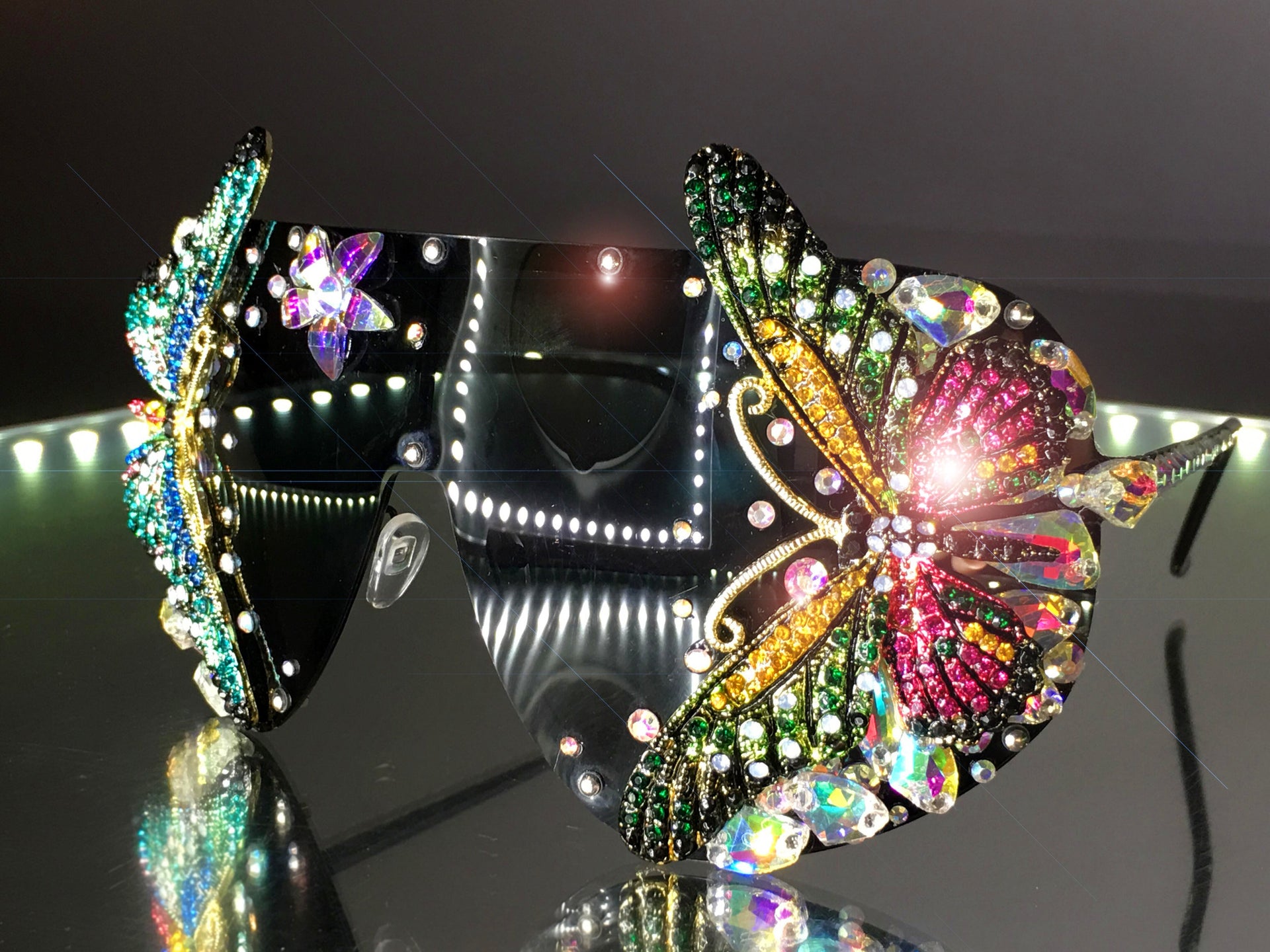 Each pair of these stunning shades are handmade with butterflies in a pavé setting including Swarovski crystal "Elements" that sparkle and bring these babies to life!