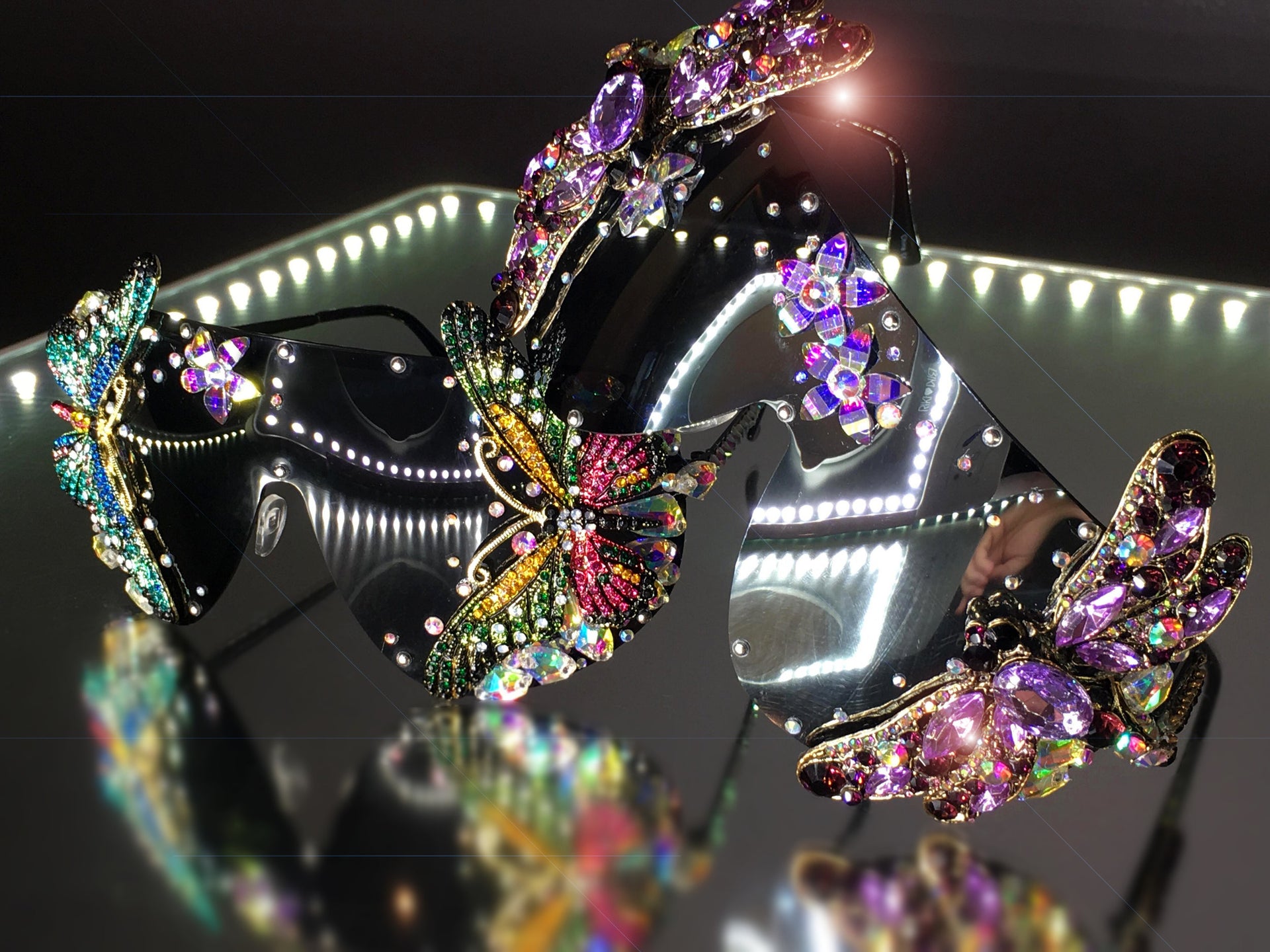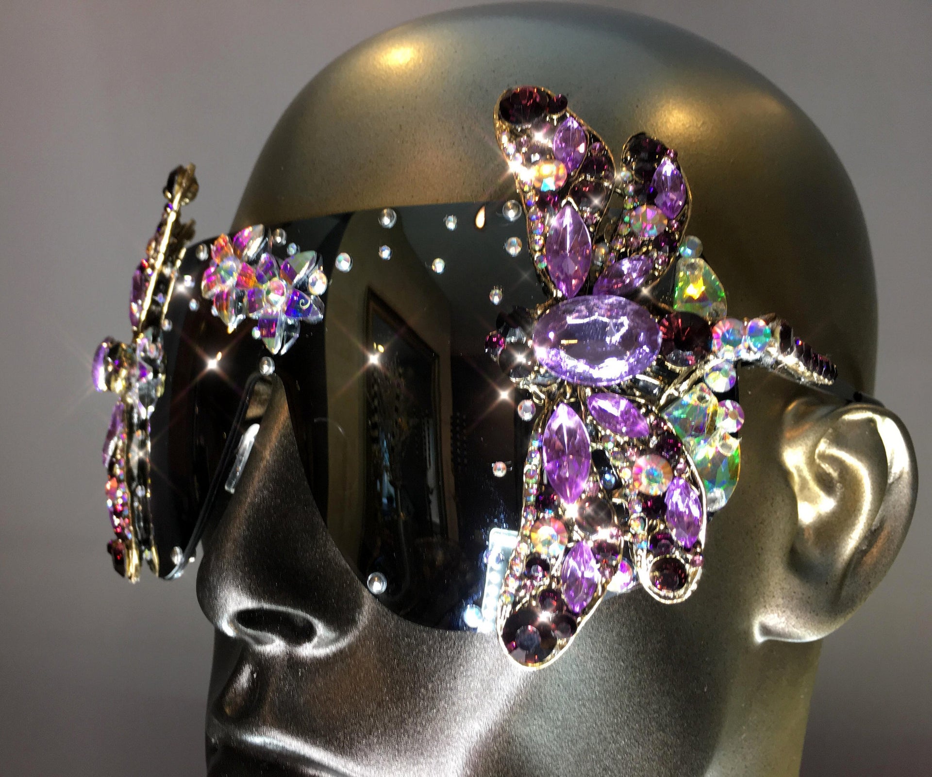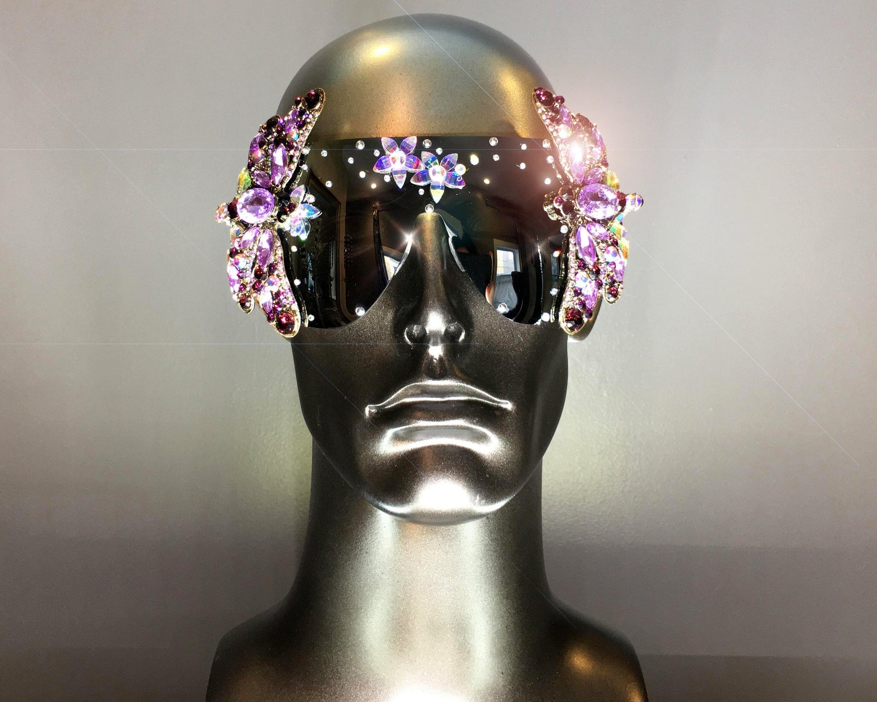 Unique One-of-a-Kind Handcrafted Crystal Eyewear and Sunglasses for Burning Man Festivals, Red Carpet Events, Coachella, EDM Music Concerts, or Cosplay. The Galactic's are Limited Edition and are made with 100% Swarovski Crystal Elements.