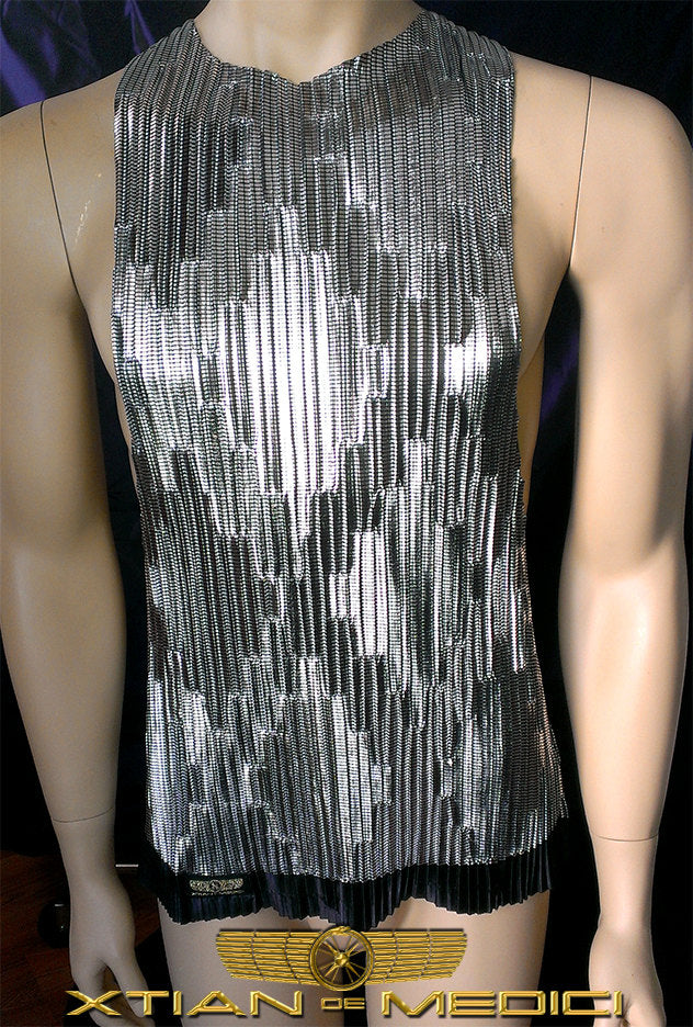 ¡La camisa reversible "Silver Streak X" es la camisa/tanque de verano ÚLTIMA! ¡Esta camiseta hace una verdadera declaración y es un espectáculo! Diseñado originalmente para clientes privados para el escenario y sus giras de conciertos.